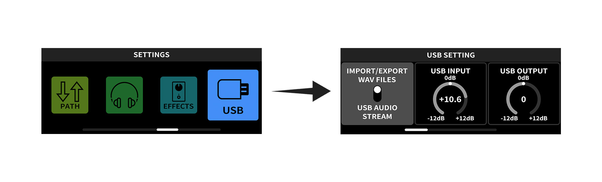 Before import playbacks in to your device, please enter SETTINGS >> USB SETTING, set USB mode at “IMPORT/EXPORT WAV FILES”