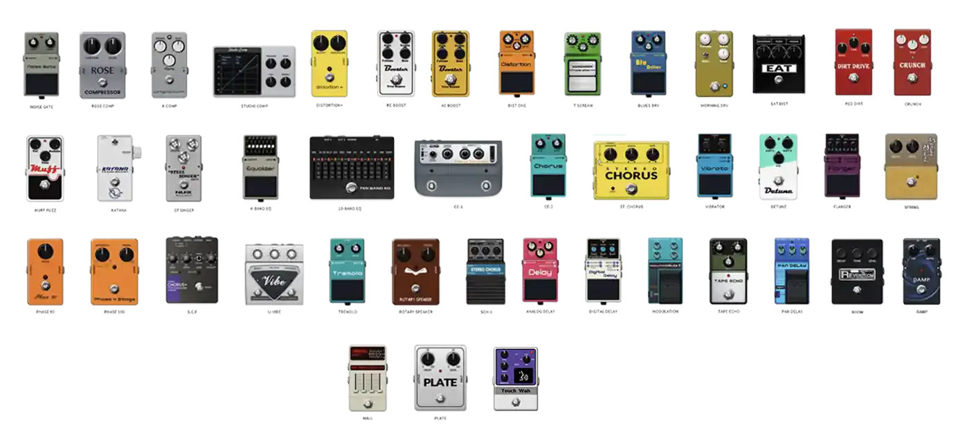 The MG-300MKII retains all the beloved effects of the MG-300, delivering everything from rich overdrives and dynamic compressors to lush delays, expansive reverbs, and precise EQs. With a comprehensive selection that includes 1 Noise Gate, 2 COMPs, 13 OD/DISTs, 1 Touch Wah, 2 EQs, 14MODs, 7 DLYs, 5 RVBs, this unit has it all.