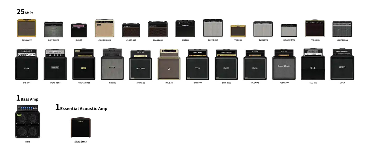 With 4 microphone models, 3 mic positions, you can shape your sound precisely. Seamlessly integrated with the MG-300 MKII’s amp modeling and effects, these IRs provide an immersive experience, delivering legendary amplifier realism on stage, in the studio, or during practice.